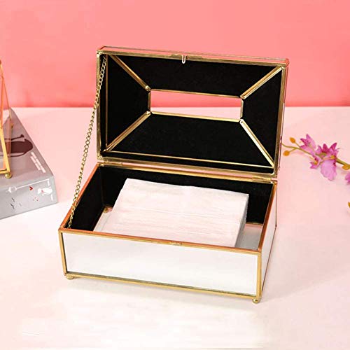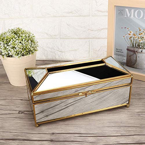 AUNMAS - AUNMAS Mirror Tissue Box, Desktop Decoration Glass Paper Holder Extraction Tissue Box Storage Case for Home Office (23 x 12 x 11cm)(L-Mirror Gold)