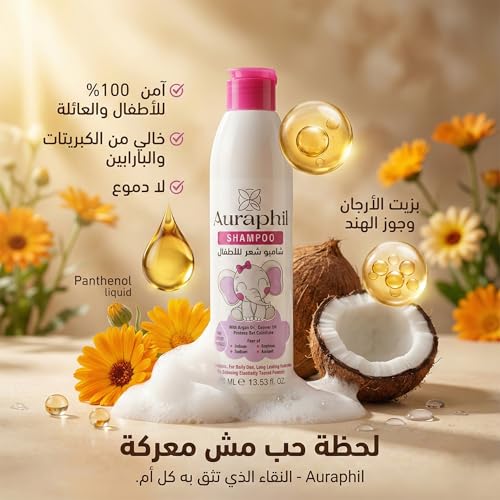 Generic - Auraphil شامبواورافيل عرض خاص 2×250 مل طبيعي بخلاصة زيت الأرجان وجوز الهند, الأفوكادو والعسل ,بروتين القمح وفيتامين E – خالٍ من السلفات والبارابين– للأطفال والبالغين للشعر الجاف والتالف والخفيف