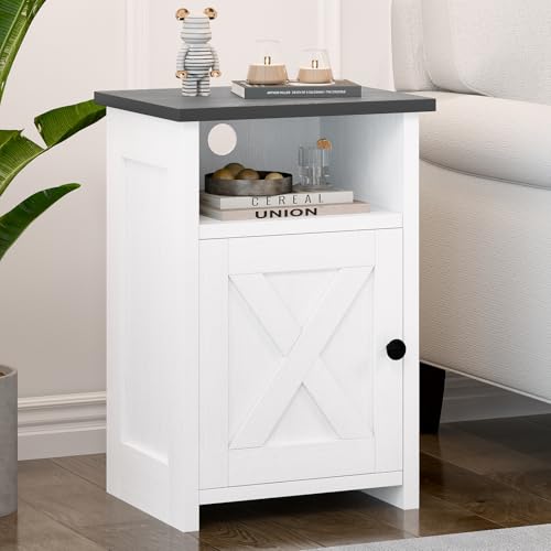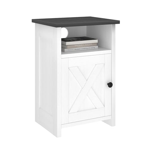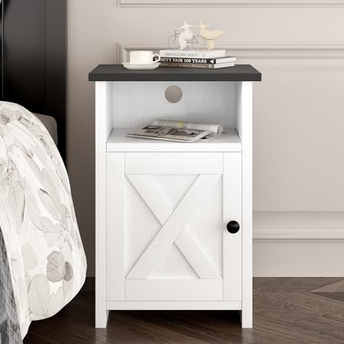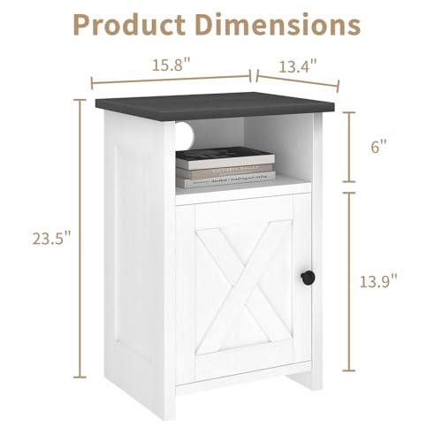 AURINEST - طاولة جانبية بتصميم ريفي بلون ابيض ريفي مع باب حظيرة ورف تخزين، طاولة بجانب السرير لغرفة النوم وغرفة المعيشة والمساحات الصغيرة، مجموعة من قطعة واحدة من اورينست