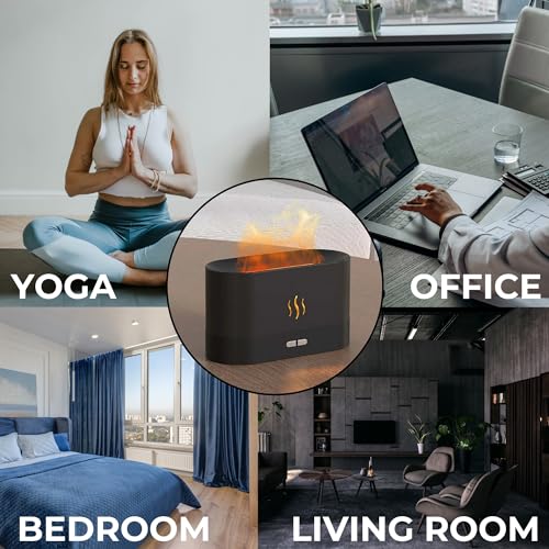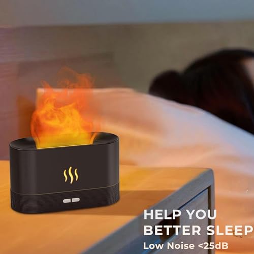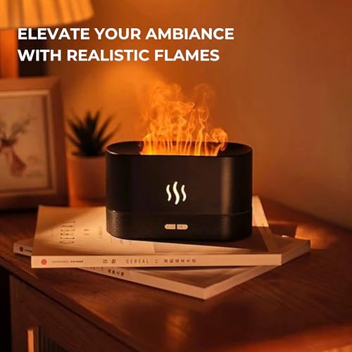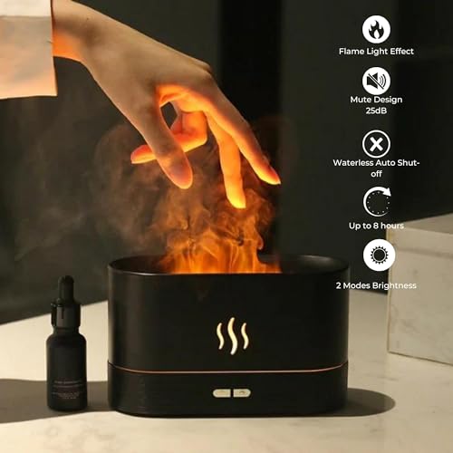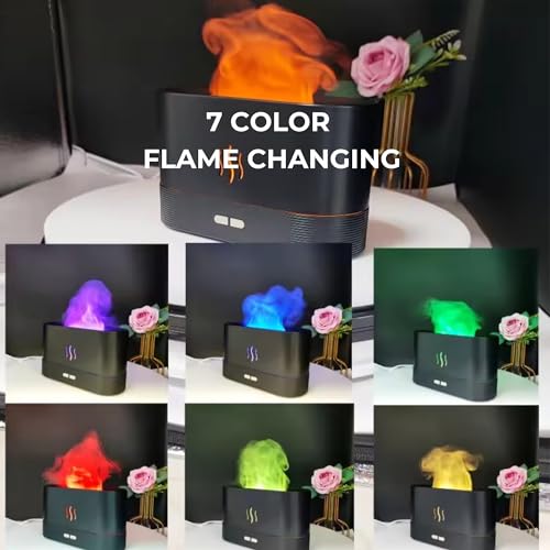 Aurum And Adorn - Flame Diffuser 7 Colour Lights Aromatherapy Diffuser Super Quiet Air Humidifier Essential Oil Diffuser for Home Office Bedroom Electric Aroma Diffuser - Black