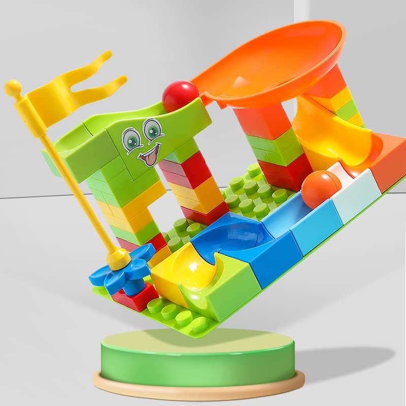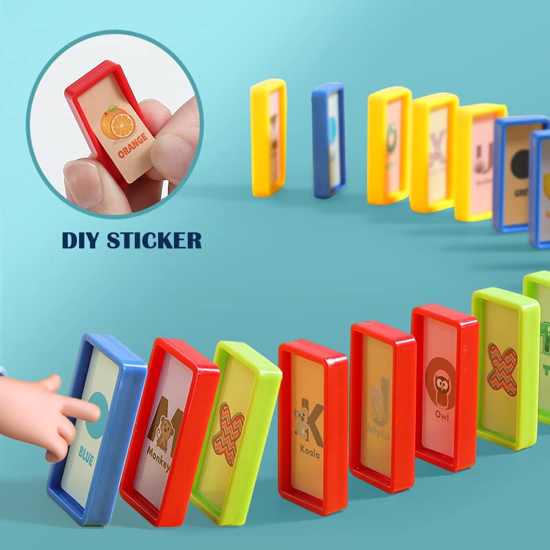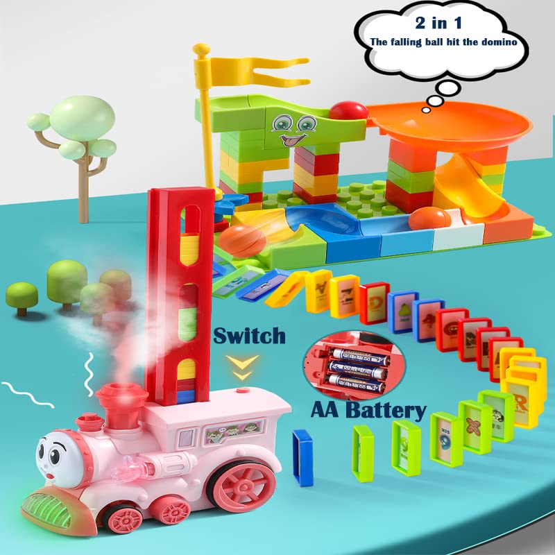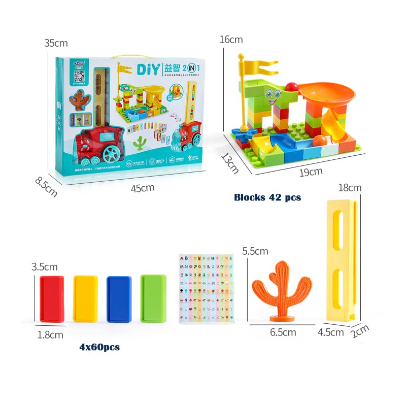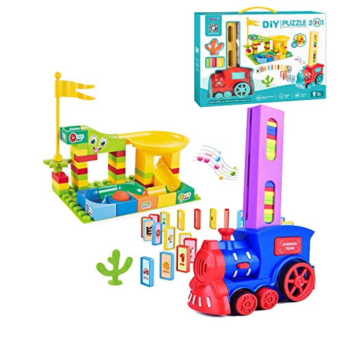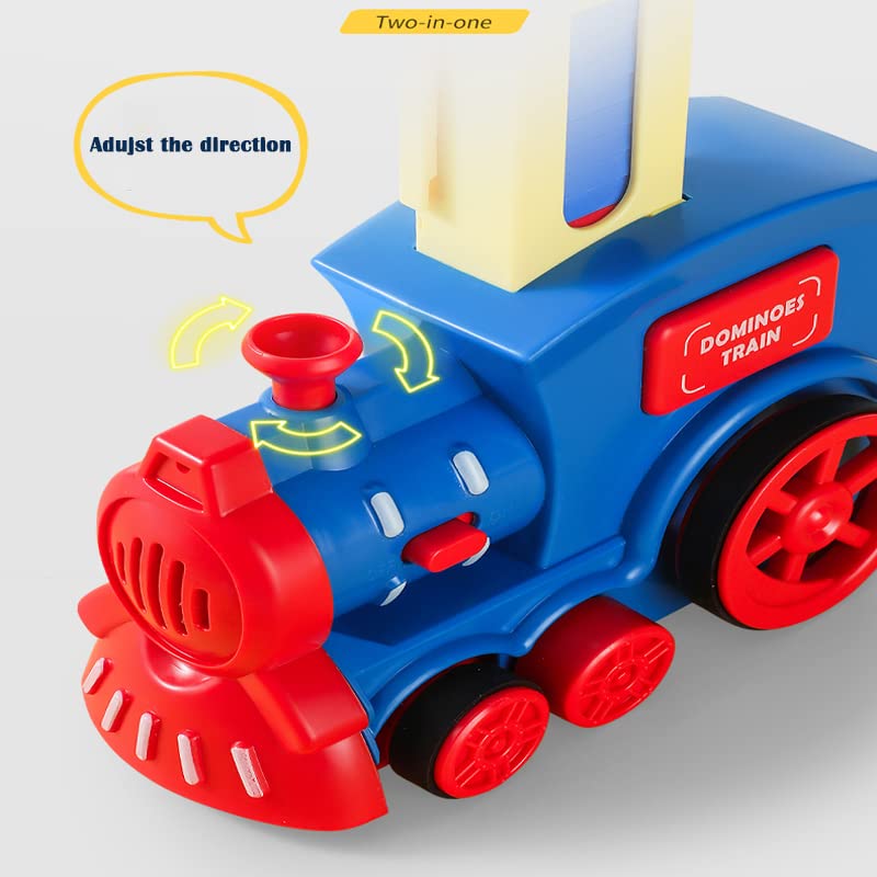 AUSLEE - مجموعة مكعبات بتصميم قطار دومينو 2 في 1 من أوسلي - قطار مرح وملون مع تجربة سريعة لرالي الدومينو للأولاد والبنات من سن 3-8 سنوات (أزرق غامق)