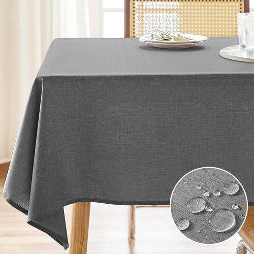 AUSSPVOCT - مفرش طاولة مستطيل 1.52 متر× 2.64 متر من أوسبفوكت، مفرش طاولة بيضاوي من الكتان مقاوم للماء والبقع وقابل للغسل، غطاء طاولة طعام للحفلات وديكور المطبخ، رمادي داكن