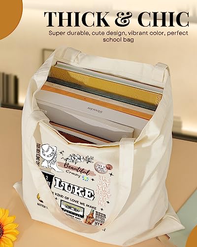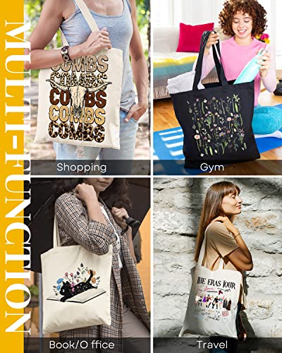 AUSVKAI - شنطة توت قماشية جميلة للنساء من اوسفكاي، شنط قطنية قماشية لطيفة قابلة لاعادة الاستخدام للمدرسة والتسوق والشاطئ والبقالة، مشط