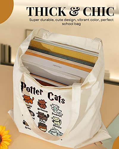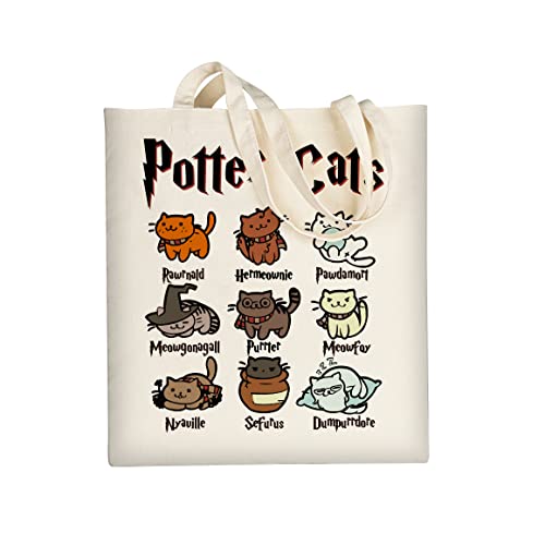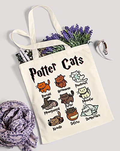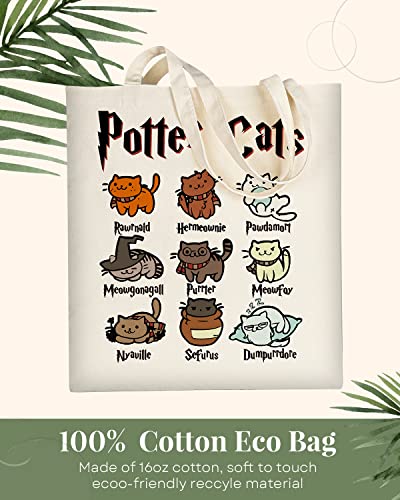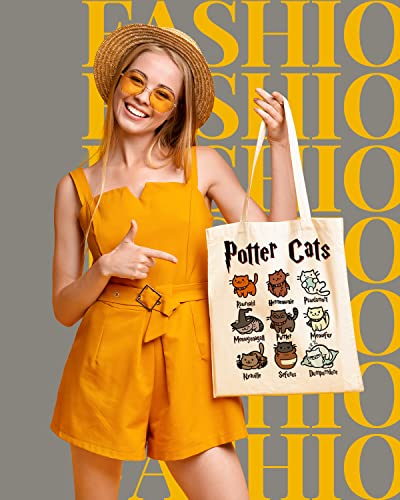 AUSVKAI - AUSVKAI Canvas Tote Bag Aesthetic for Women, Cute Reusable Cloth Cotton Bags for School Shopping Beach Grocery, Potter Cats