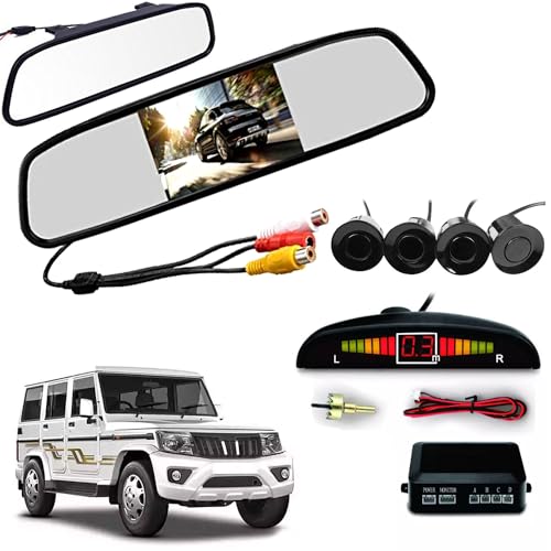 - شاشة رقمية تي اف تي ال سي دي مقاس 4.3 بوصة مثبتة على مراية الرؤية الخلفية مع عرض رقمي للمسافة من أقرب عائق أثناء الرجوع للخلف مع إرشاد صوتي بشري يوضح مسافة الاقتراب.