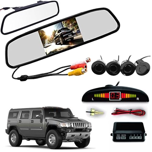 Auto Pearl - نظام فيديو للركن مزود بمراية رؤية خلفية بشاشة تي اف تي ال سي دي مقاس 4.3 بوصة مع كاميرا خلفية عالية الدقة بقطر 16.5 ملم و4 حساسات ركن من هامر
