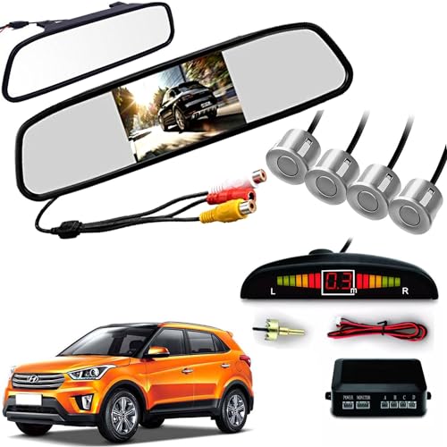 Auto Pearl - Auto Pearl 4.3 Inch TFT LCD Rearview Mirror Parking Video System with 16.5 MM for Reverse HD Camera, 4 Silver Parking Sensors Compatible with Creta