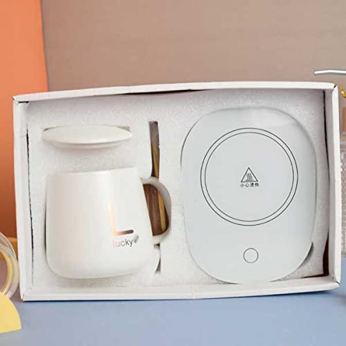 Spaceshoop - Auto Turn/Off Ceramic Electric Coffee Cup Heater with Ceramic Cup, Lid and Spoon (250ml)
