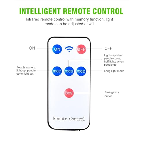 - Offering three operational modes, this wall-mounted light adapts to various outdoor lighting needs, such as security, ambiance, or illumination for paths and entrances, all managed conveniently via remote control.