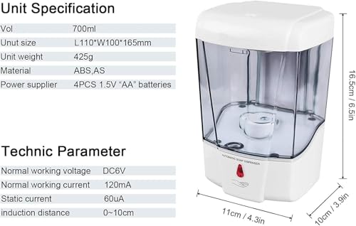 Generic - موزع الصابون السائل الاوتوماتيكي - يعمل بدون لمس بالاشعة تحت الحمراء - يعلق على الحائط، مناسب للمستشفى والمطار والمطبخ والحمام والفندق، بسعة كبيرة للغاية، 700 مل، أبيض