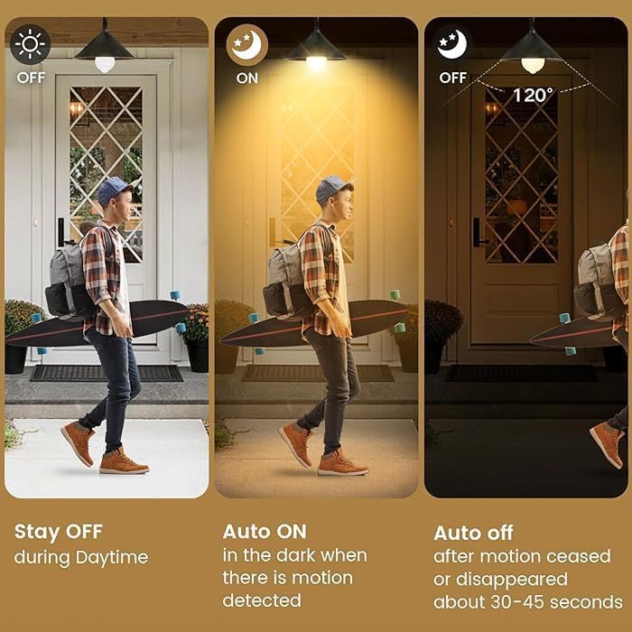 - Built-in motion sensor light will automatically light up when motion is detected within 1 to 3m range, and turns off after 30 seconds when no movement