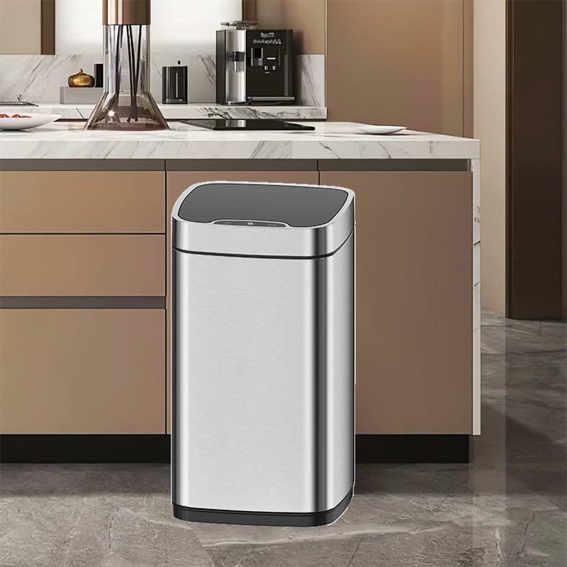 Generic - سلة مهملات بمستشعر اوتوماتيكي، سعة 35 لتر، ستانلس ستيل، فضي