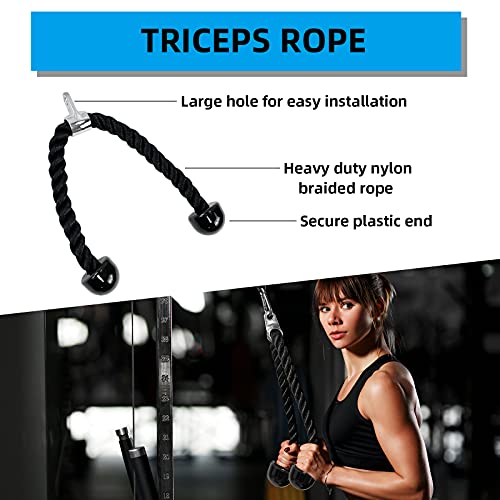 - ✔ حبل ثلاثي الرؤوس - مصنوع من حبل مضفر من النايلون الأسود شديد التحمل مع أطراف مطاطية صلبة وملحقات دوارة مطلية بالكروم توفر حركة مرنة عند إجراء تمرين ثلاثي الرؤوس قابل للسحب، سعة الوزن: تصل إلى 900 باوند!