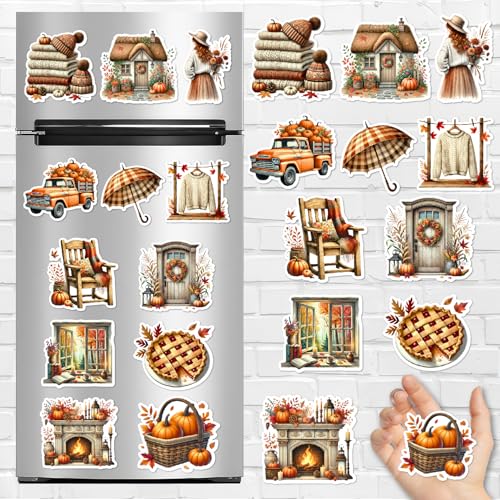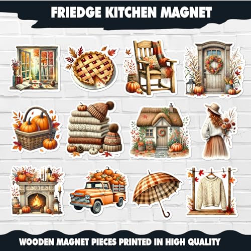 Generic - Autumn Fall Fridge Magnets Set – Retro Cozy Seasonal Magnets with Pumpkins, Leaves, Acorns & Fall Vibe for Refrigerator, Kitchen Decor, Office, Aesthetic & Home Decoration