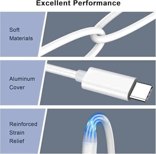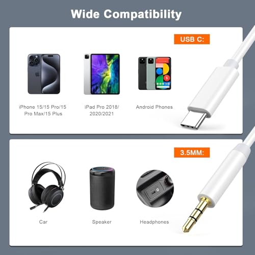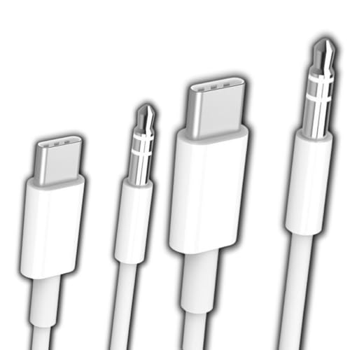Generic - كابل AUX إلى USB نوع C بمقبس جاك ذكر 3.5 ملم متوافق مع سماعة الرأس وستيريو السيارة لتوصيل موبايل آيفون 15/15 بلس/15 برو ماكس وسامسونج مع ستيريو السيارة المنزلية ومكبر الصوت (عبوة من قطعتين، لون أبيض)