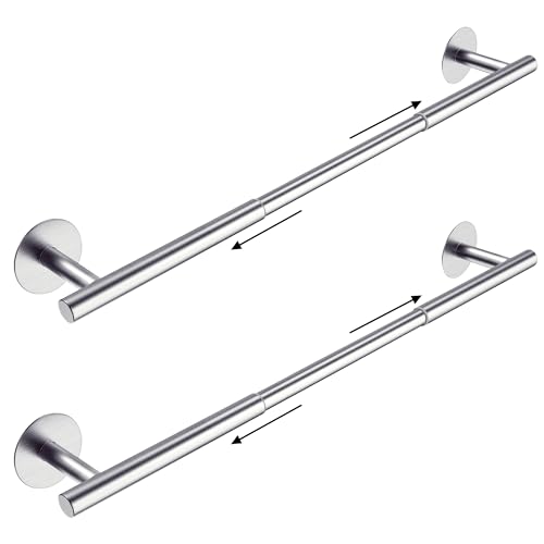 AUZONIMICS - 2 Pcs Towel Rail 60cm / 23.6in, Stainless Steel Adjustable Bathroom Towel Rack, No Drill, Self-Adhesive, Anti Rust Towel Bar Bathroom Accessories for Kitchen, Wall, Bathroom Hand Towel Rack