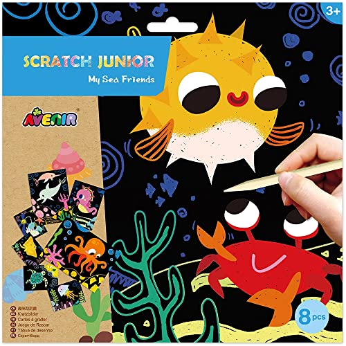 Avenir - Avenir Fish Sea Creatures Drawing Game - 8 Sheets, Scratching Tools - Ages 3 & Above - Drawing Game