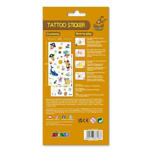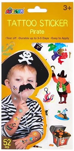Avenir - تاتو مؤقت بطابع قرصان مجموعة من 52 قطعة من الوشم المؤقت مع حبر مائي عالي الجودة آمن وسهل التركيب والإزالة يدوم حتى 3-5 أيام للأطفال من سن 3 سنوات فما فوق من افينير
