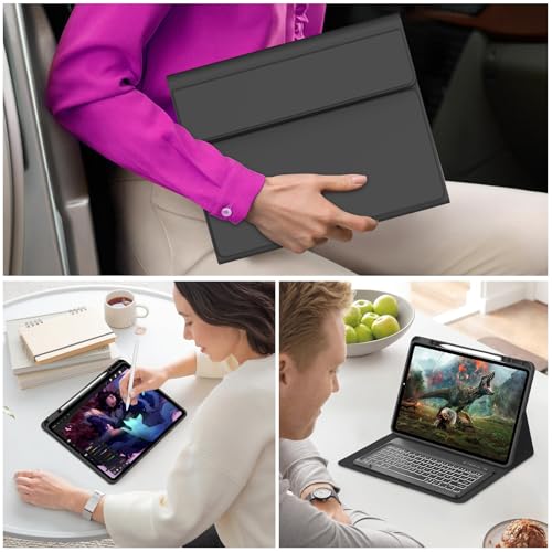 - 【Full Protection & Pen Support】Premium protective cover for iPad Pro 13 M4/M5 consists of flexible PU to protect your tablet from accidental drops and scratches and provides full body protection. The keyboard cover has a built-in pen holder for placing easy transport and use placed. Precise corners allow full access to all connections.