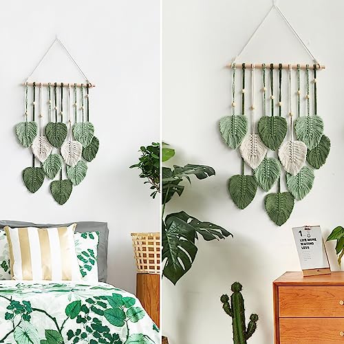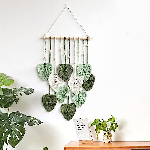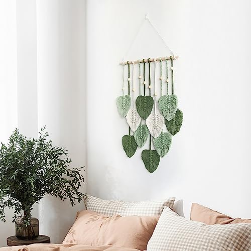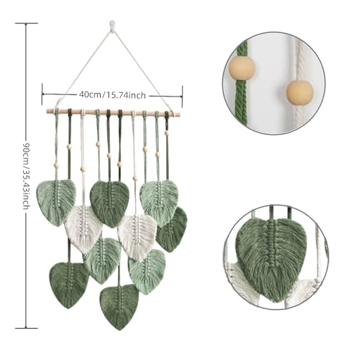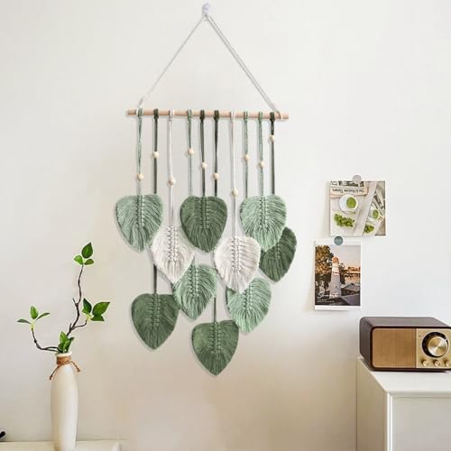 - Macrame Leaf Wall Hanging: The wall decor with leaf tassels for all styles of rooms. Green brings life to a room and is the perfect artwork to hang over a bed or crib, sofa, mantelpiece or desk. Can also be given as a gift to your friends or family for Christmas, birthday, wedding or housewarming