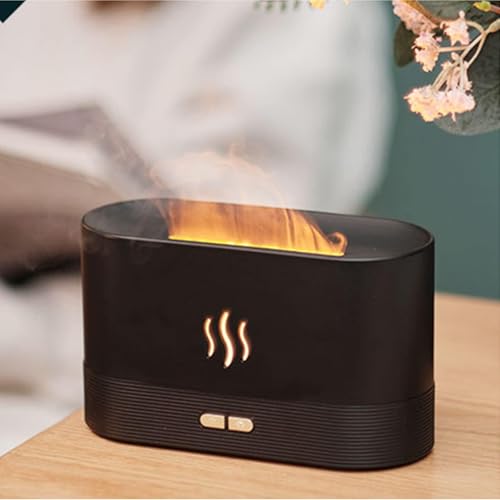 - [AROMATHERAPY & SIMULATED FLAME]: Flame ultrasonic humidifier, Essential oil diffuser, Aroma oil diffuser uses premium quality materials. The combination of light and fog creates a beautiful and realistic flame effect.
