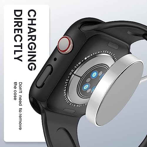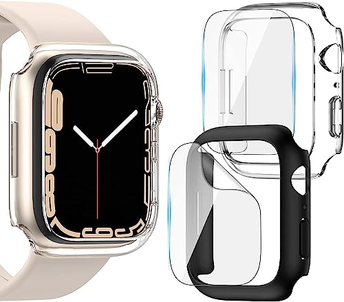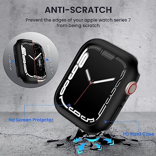 AWH - غطاء حماية ساعة متوافق مع ساعة آبل سيريز 7، غطاء صلب بولي كربونات بحافة حماية، إكسسوارات للنساء والرجال من ايه دبليو إتش، 45 ملم (شفاف+أسود)