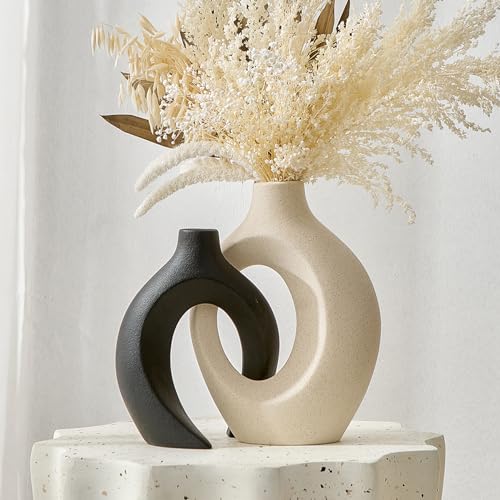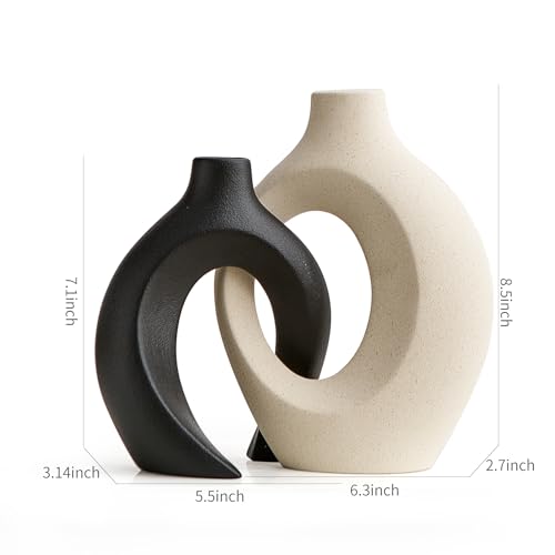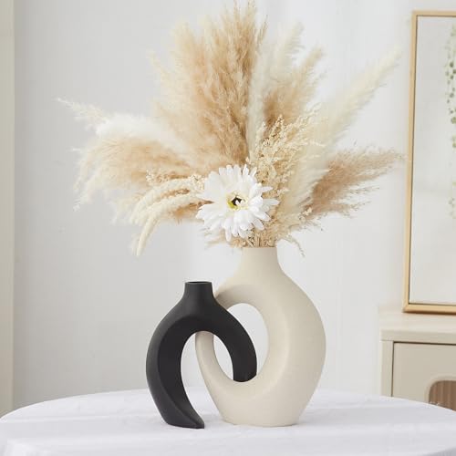 AWNR - AWNR Ceramic Vase Wedding Decor: Set of 2 Black & White Flower Vases for Modern Home Decor