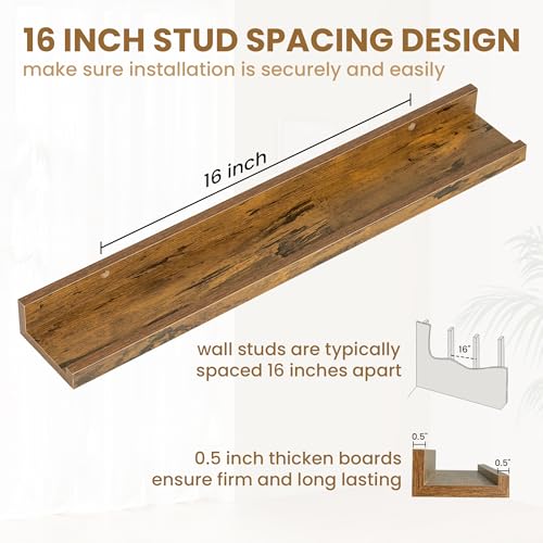 - Floating Ledge Shelf - Each picture ledge shelf with a lip has a baffle design to prevent items from falling off, never worry about sliding down compared to other floating shelves. The appropriate width won't take up too much protruding space during use.