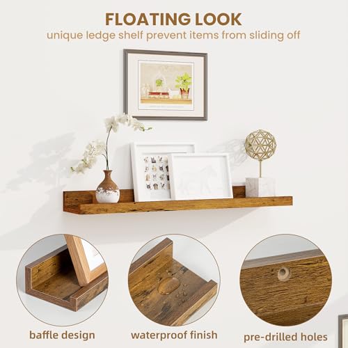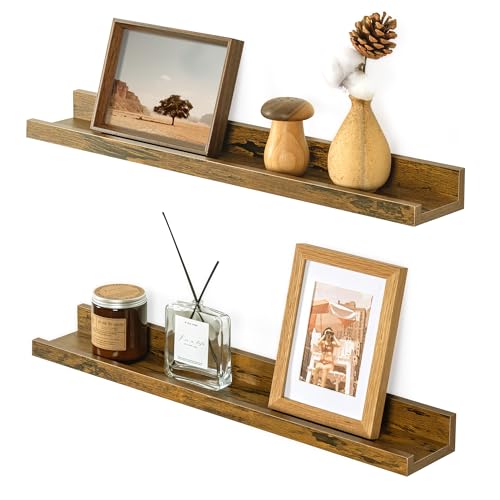 Axeman - Axeman Picture Ledge Shelf, Rustic Floating Shelves 24 Inches Long, Picture Shelf for Wall with Ledge, Floating Shelves with Lip Set of 2, Picture Shelves Photo Ledge Shelves Wall Display Shelves