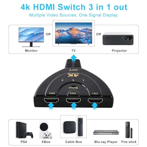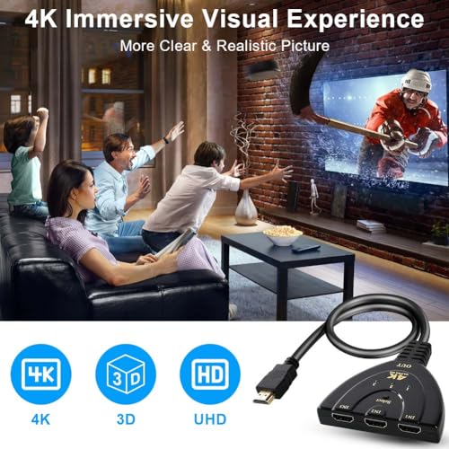 AXFEE - محول HDMI 4K من اكسفي، 3 مداخل 1 مخرج يدعم كابل HDMI عالي السرعة، 4K 3D HD@30 هرتز 3D HDCP2.2 1080P، لص HDMI لتلفزيون HDV/اكس بوكس/بلايستيشن 4/مشغل أقراص Dvd بلو راي