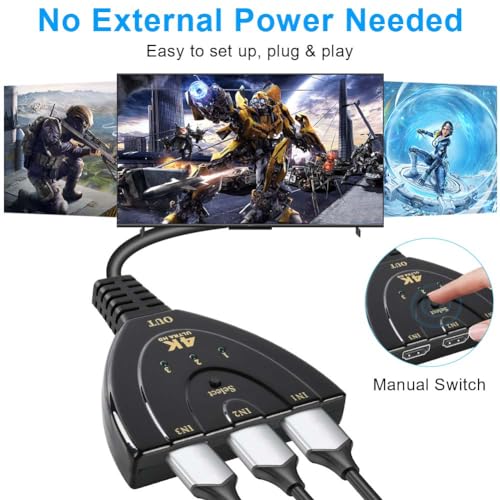 - 🚗【محول من ثلاثة إلى واحد】يسمح بـ 3 مصادر إدخال HDMI إلى شاشة إخراج HDMI واحدة، تبديل سهل بنقرة واحدة. لا حاجة لتغيير منافذ الكيبل بشكل متكرر، مما يجعل استخدامه أسهل وأسرع لتلبية احتياجاتك المختلفة.