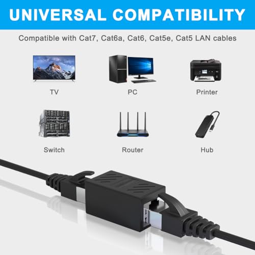 - 【Wide Compatibility】 The 8P8C female-female Ethernet coupler plug is compatible up and down with Cat5, Cat5e, Cat6, Cat7, Cat8 cables. It is ideal for set-top boxes, routers, wireless devices and computers.