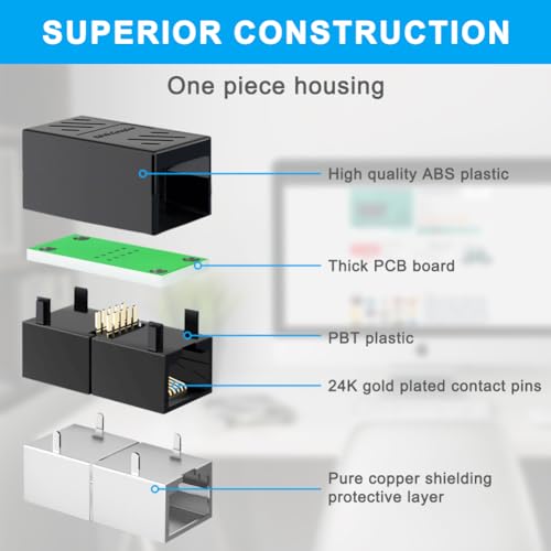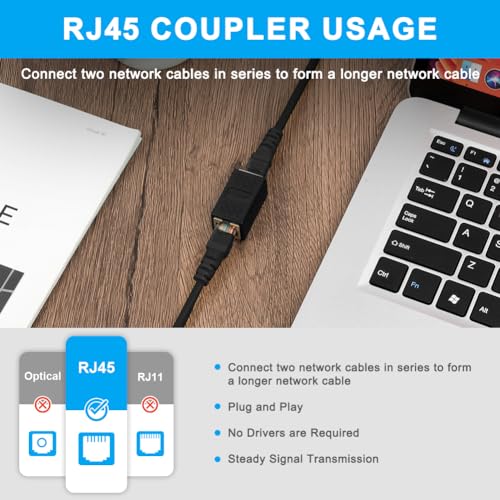 - 【EFFECTIVELY EXTEND CABLES】 The RJ45 coupler adopts a female-female connection form. Without affecting the network speed, you can connect 2 short network cables to extend the length of the existing cable. It incorporates 24K gold-plated contacts and an easy snap on retainer to ensure secure, corrosion-free connections.