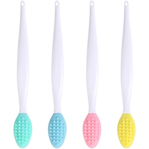 Axicvloes - 4 Pcs Double-Sided Pore Scrubber, Lips Brush Exfoliator, Silicone Pore Cleaning Brushes, Lip Brush Exfoliator for Dark Lips, Face (4 Colors)