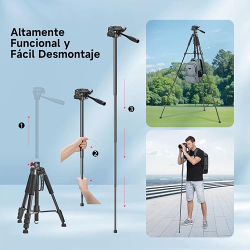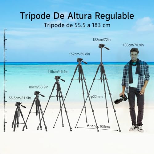 AXNEN - حامل كاميرا مهنيبارتفاع 1.83 م للموبايل، تصميم مع جهاز تحكم ودوران 360° مع شنطة حمل ومتوافق مع كاميرات DSLR وآيفون وأندرويد من أكسينين