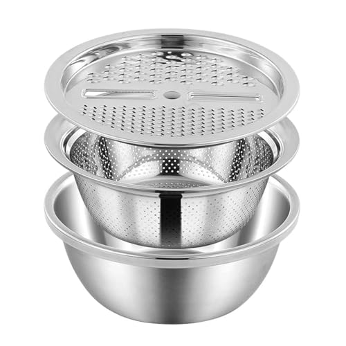 AYF - AYF 10 Inch Multifunctional Stainless Steel Grater Basin 3 In 1 Colanders Basin, Grater Strainer and Drain Basket Salad Maker Bowl