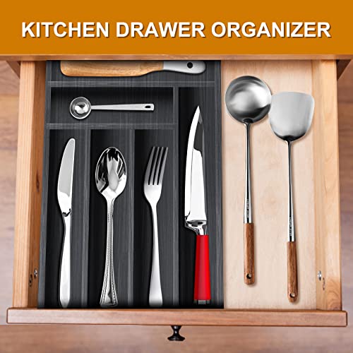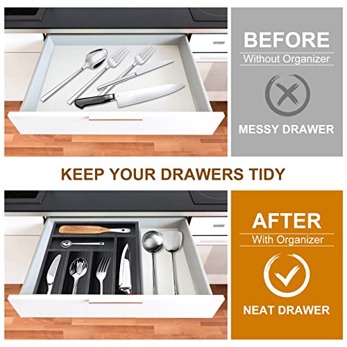 Ayiaren - ايرين منظم ادراج المطبخ صينية ادوات المائدة الخشبية الفضية درج المصنوعة من الخيزران حامل للادراج