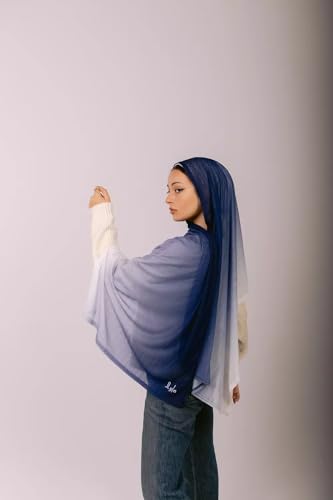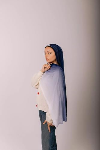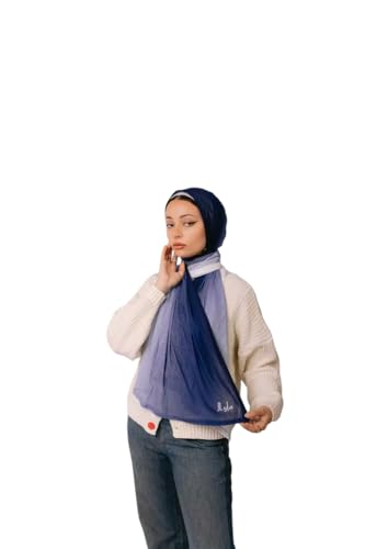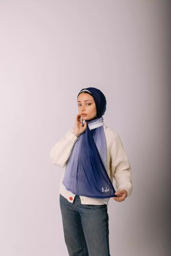 Ayla - Ayla Scarves - Luxurious Egyptian Cotton-Lycra Blend Kuwaiti Scarf, Navy & White, Stretchable Comfort Design, 200x70 cm