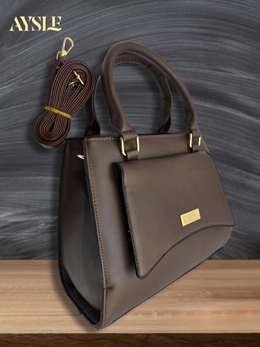 AYSLE - 1574 LEATHER WOMEN’S TOP HANDLE BAG, SHOULDER BAG, CROSS BODY BAG WITH ATTATCHED BELT, MODERN AND ELEGANT DESIGN, DIMENSIONS 25 * 31 * 14 CM