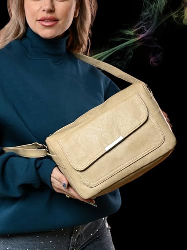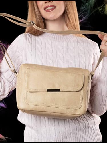 AYSLE - 1584 LEATHER WOMEN’S CROSS BODY BAG, SHOULDER BAG, WITH ATTATCHED BELT, MODERN AND ELEGANT DESIGN, DIMENSIONS 19 * 26 * 13 CM