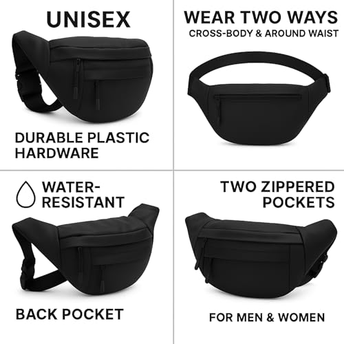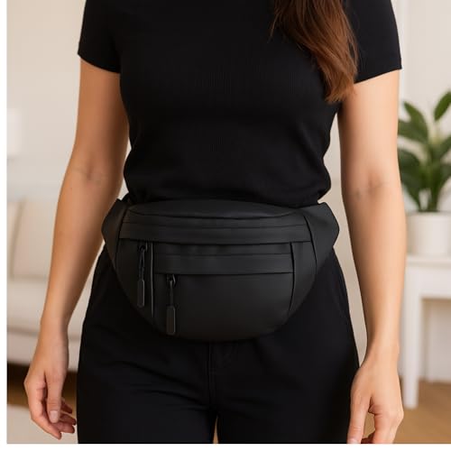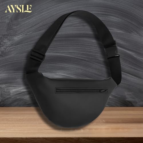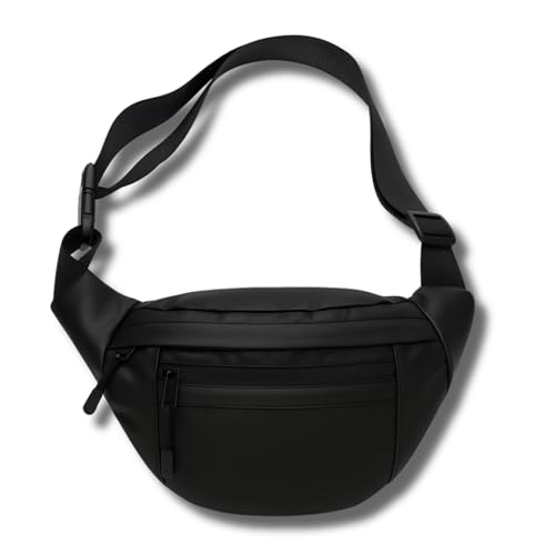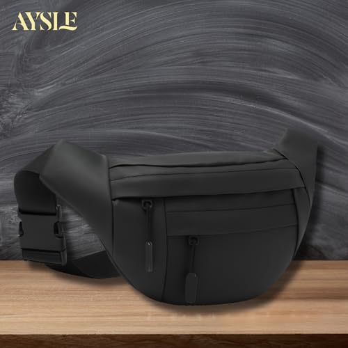 AYSLE - شنطة خصر وكروس مقاومة للماء للجنسين 1629 مصنوعة من خامة مقاومة للماء مع 3 جيوب بسوست وقطع بلاستيك سوداء متينة بحزام قابل للتعديل من ايسل، متوفرة بـ 12 لون، مقاس 16 × 30 × 10 سم (لون أسود A)