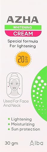 azha - كريم للوجه والرقبة من أزها لتفتيح البشرة والترطيب وحماية من الشمس مع اس بي اف 20، مناسب لجميع أنواع البشرة، 30 جرام