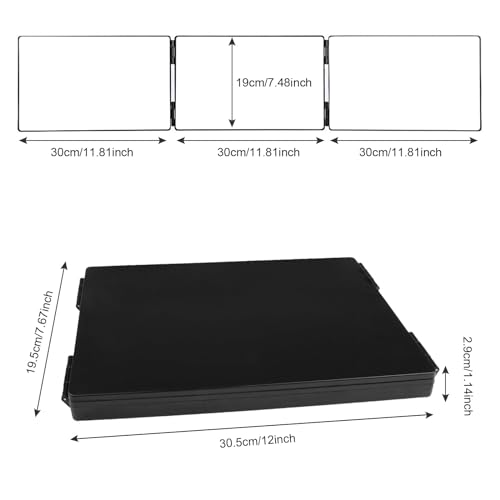 - 👗【سهلة الحمل】: عند طيها، يبلغ مقاس المراية 30 × 19 × 2.9 سم فقط وتزن أقل من 1.5 كيلوجرام. تصميمها خفيف الوزن وصغير الحجم يجعل من السهل حملها وتخزينها في شنطة السفر أو حقيبة اليد، ما يجعها مثالية للاستخدام المنزلي أو السفر أو رحلات العمل.