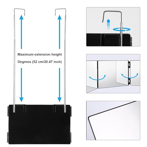 - 🔧【ارتفاع قابل للتعديل】: تتميز بخطافين قابلين للسحب لغرض التعديل، ويمكن تعليق هذه المرآة على الأبواب أو الجدران أو الحمامات أو الدواليب أو وضعها على الطاولة. إنها متينة أينما علقته، ويمكن تعديل الارتفاع ليناسب احتياجاتك.