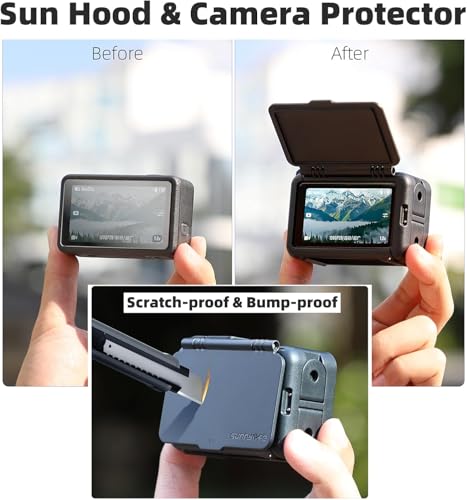 - 【تصميم 2 في 1】هذا التصميم المبتكر 2 في 1 لا يحجب شاشة الكاميرا فحسب، بل يعمل أيضًا كواقي شاشة. حاجب الشمس قابل للتعديل بالكامل، مما يسمح له بالدوران بحرية والقفل في أي زاوية، مما يحسن أداء التظليل بشكل كبير ويوفر رؤية محسنة في البيئات الساطعة.
