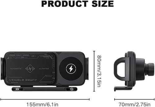 - ⚡ 15W FAST WIRELESS CHARGING: Equipped with dual-coil technology, the holder offers 15W fast charging for devices larger than 5.9 inches, ensuring your phone stays powered up while on the road.