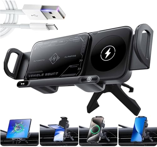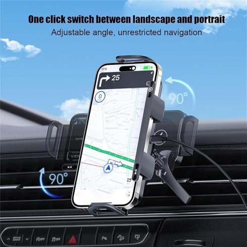 Azonee - Azonee High Intelligent Mobile Phone/Pad Holder, 2 in 1 Auto Rotating Phone Holder with 15W Wireless Car Charger, Dual Coils, Fast Charging Air Vent Mount (Black)