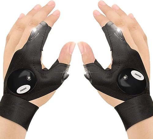 Azonee - قفازات مصباح يدوي ليد للرجال من ازوني، مصابيح بدون استخدام اليدين لصيد الأسماك والتخييم والمشي لمسافات طويلة، أداة فريدة للميكانيكيين والكهربائيين والآباء والحرفيين وإصلاح السيارات، زوج واحد أسود