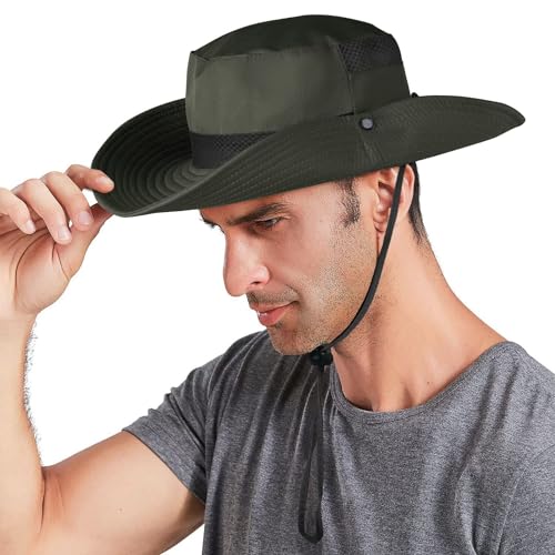 Azonee - قبعة شمس للرجال من ازوني للحماية من الاشعة فوق البنفسجية بحافة عريضة مقاومة للماء وجيدة التهوية وقابلة للطي للاستخدام الخارجي مقاس L