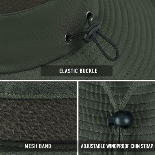 - 【مقاس واحد يناسب معظم الأشخاص】 - مصممة لتناسب محيط الرأس من 22-22.8 انش، تتميز قبعة الصيد للرجال هذه بحافة عريضة 3.75 انش وارتفاع 3.9 انش، ووزن صافي 0.25 باوند فقط. رباط مرن مع مشبك على الظهر يسمح بسهولة التعديل لتحقيق ملاءمة مريحة، مما يجعله مناسبًا لمعظم مقاسات رأس الرجال. بالإضافة إلى ذلك، يضمن حزام الذقن القابل للتعديل المقاوم للرياح بقاء القبعة مثبتة بإحكام حتى في الظروف العاصفة أو الممطرة.